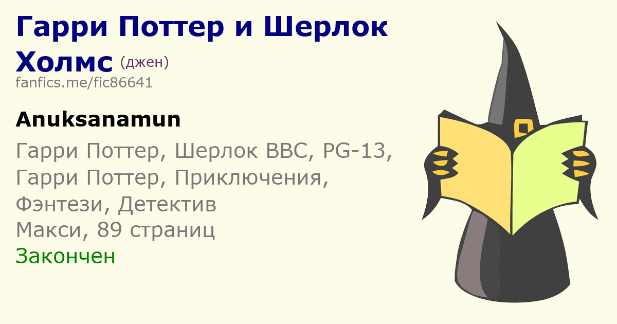 | После прочтения фанфика в голове сама собой заиграла тема из Шерлока) я очень явно представил последнюю сцену: многозначительная улыбка Поттера и въедливый взгляд Холмса. В игру! 2 | |